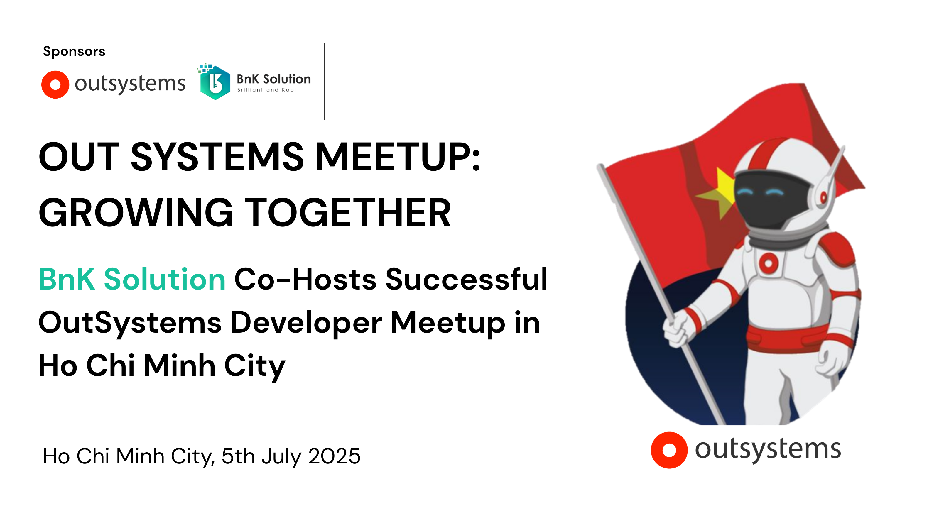 Following the resounding success of our first event in Hanoi in June 2023, BnK Solution proudly collaborated with OutSystems to successfully host "OutSystems Developer Meetup: Growing Together" in dynamic Ho Chi Minh City. This event reaffirms BnK Solution's commitment to advancing Low-code technology and cultivating a robust developer community in Vietnam.